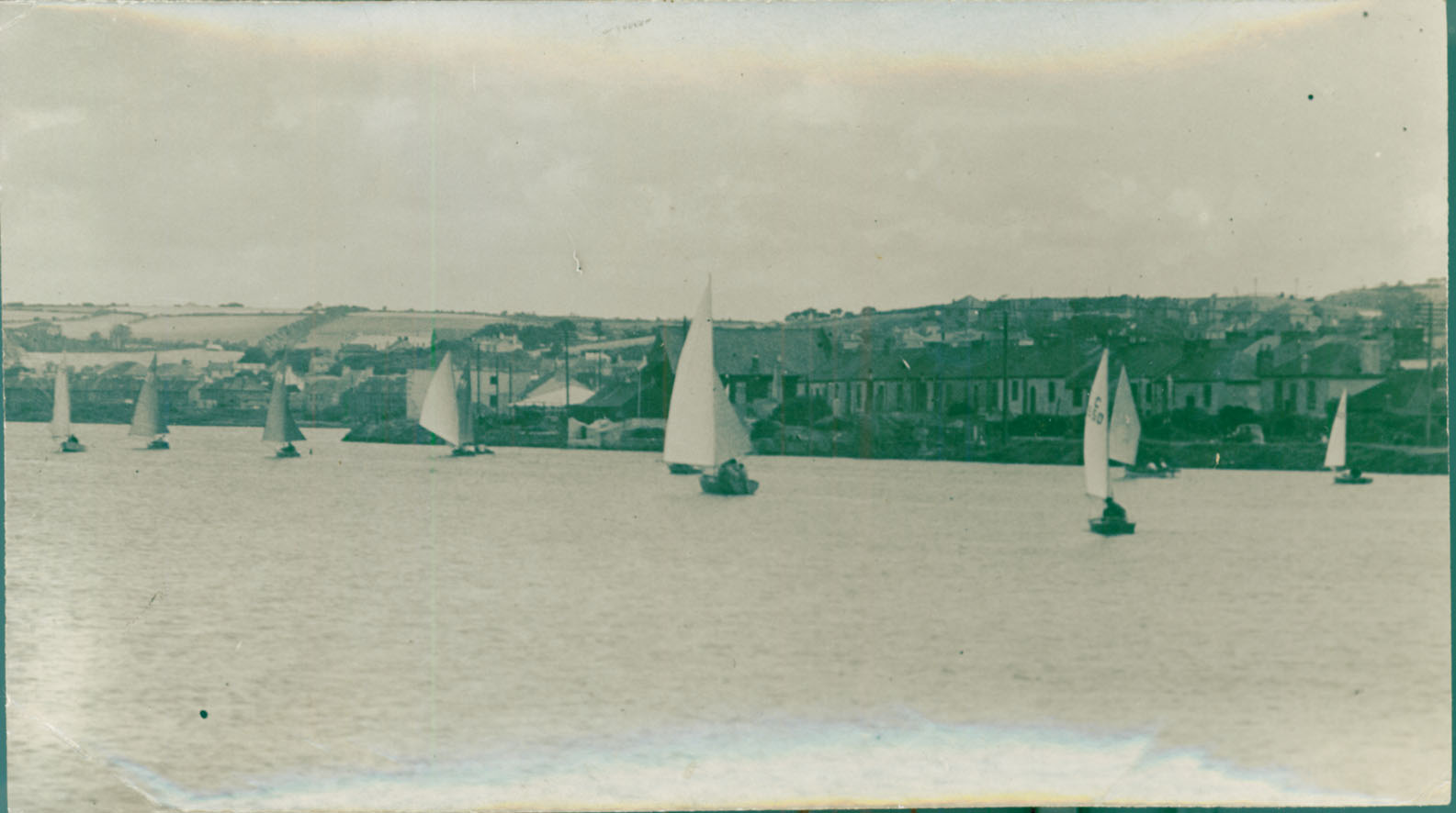 Description: Sailing boats in Hayle Pool at high water on a spring tide during Hayle Regatta, 1957. The photo was taken from the King George Il Memorial Walk, Phillack, looking towards Hayle.