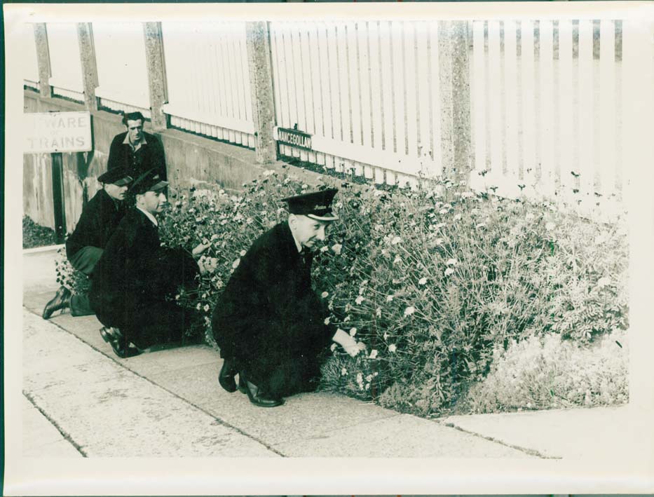 Item: Railway staff tending the garden at Nancegollan Station.