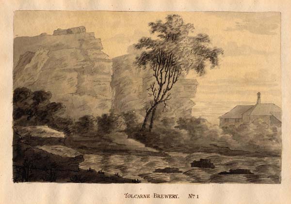 Description: Tree in centre of picture, buildings on the right in the middle-ground and rockface on left