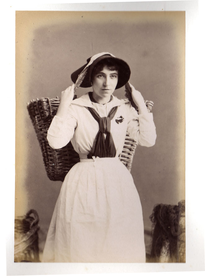 Description: Picture of a Cornish fishergirl, one of many images of the Penzance area taken by Robert Preston and contained within an album.