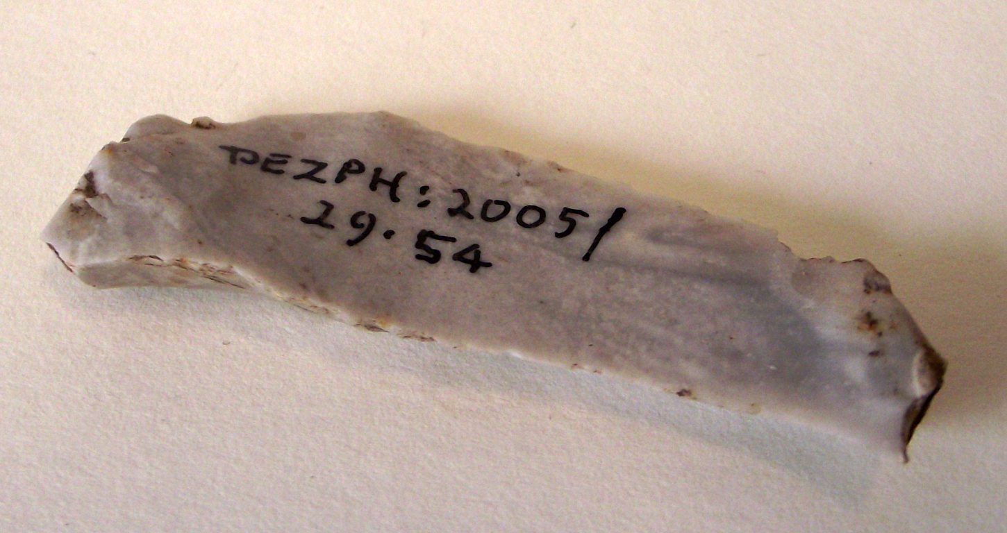 Description: Flint blade flake, one edge utilised