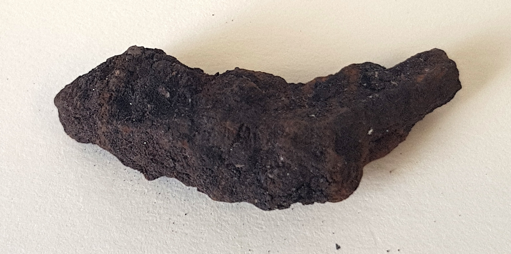 Description: A fragment of iron found below turf. It has an elongated shape.