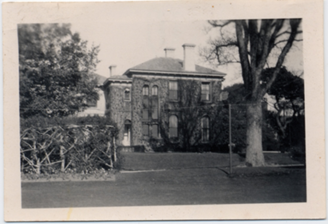 Description: Photograph of a back view of Penlee House, where the house is covered in Virginia Creeper. Printed on Velox photographic paper.