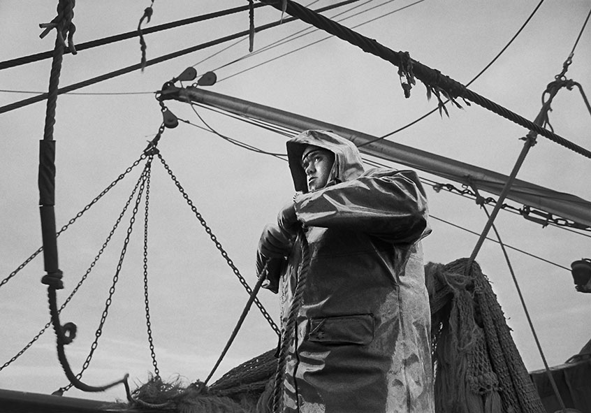Item: Malcolm Smitheram, deckhand and cook, securing the nets on the 'Aaltje Adriaantje', PZ 198, a beam trawler working out of the Cornish port of Newlyn.