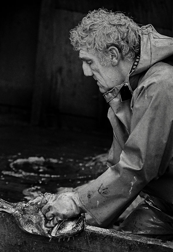 Item: Barrie Howes, a fisherman for forty years, gutting monkfish on the 'Aaltje Adriaantje', PZ 198, a beam trawler working out of Newlyn.