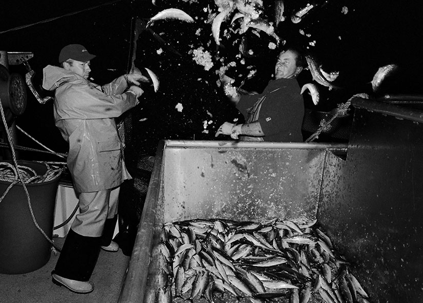 Item: Hauling in a catch of sardines aboard the 'Pride of Cornwall'.