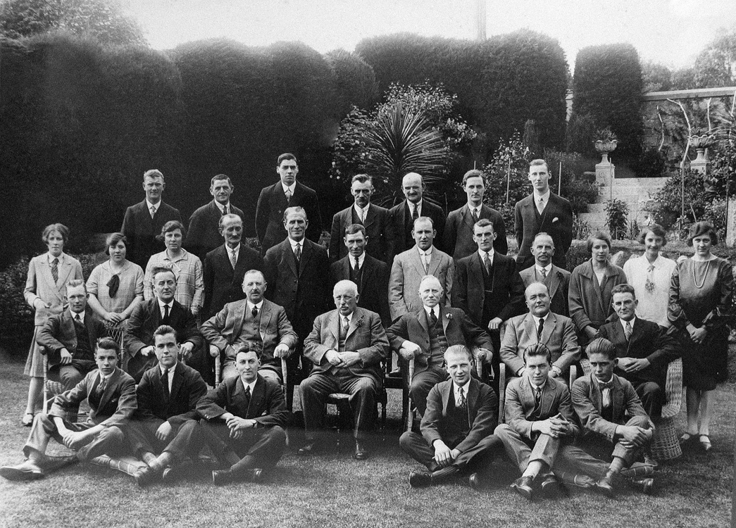 Description: Photograph showing the staff of Tonkin's Grocery Stores, which was situated in Bread Street (opposite what is currently Simpsons). Thomas Mitchell is shown in the top row, second from right.
