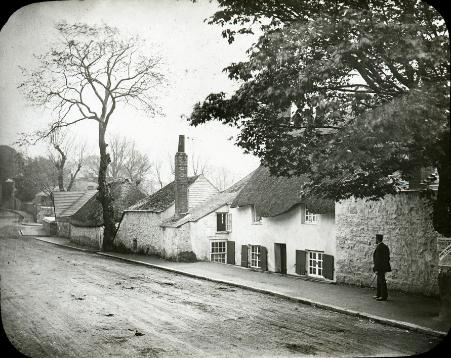 Description: This picture, taken probably Springtime around the turn of the 20th century, is of Hawke's Cottage in Alverton Road, the former home of Sir Edward Pellew, It shows how the level of the road has risen over the years. At one time this was a farmhouse whose fields may have stretched as far as Wherrytown.