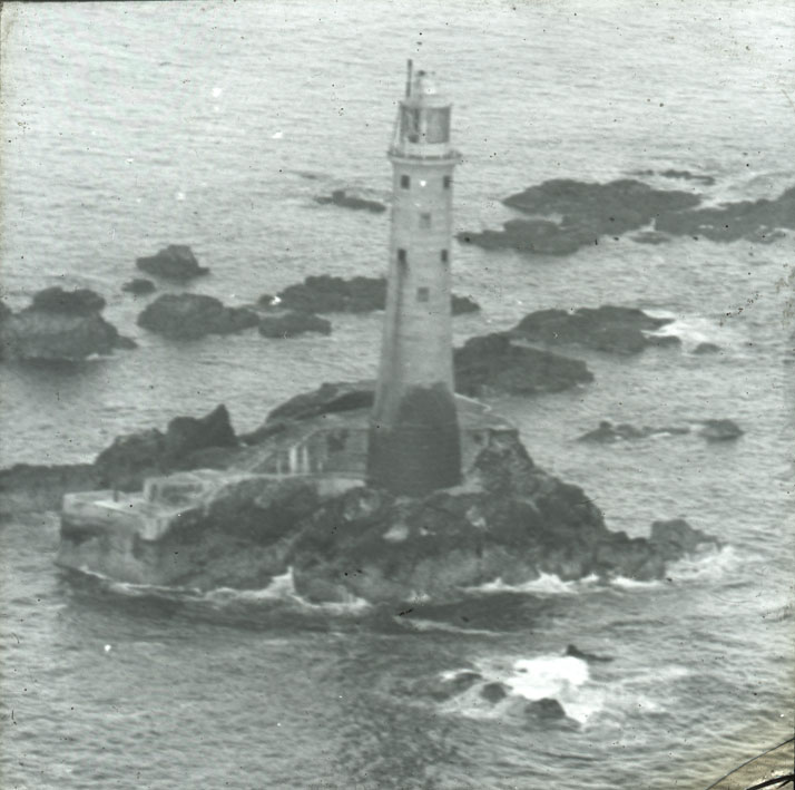 Description: Photographed from the air and from the seaward (western) side, in this photo of the Longships Lighthouse, the tower is heavily weather stained. This suggests a relatively modern’ photo, but one taken prior to fitting the helicopter platform in 1974. This rock tower was built by the Corporation of Trinity House 1870-1873 to replace the 1795 tower.