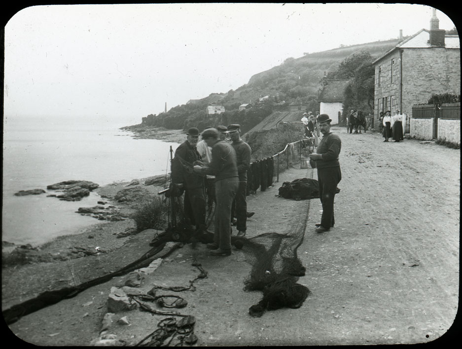 Item: Fishermen working their nets at Newlyn