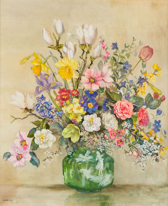 Description: Still life with flowers in a green jug. The jug is also now in Penlee House's collection.