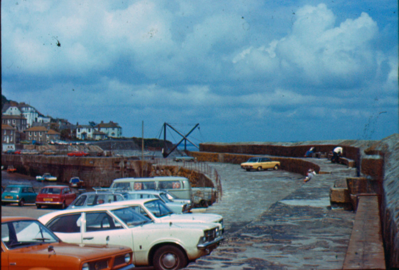 Description: Once an important fishing port, Mousehole in 2012 is largely a village for holiday home owners and tourists. Its charm lies in its small cottages and courtyards. At Christmas it is renowned for its lights. Originally Mousehole comprised two separate towns and was one of the principal ports in Mounts Bay, not only for fishing and markets but for the departure of pilgrims to San Compestello. It lay within the jurisdiction of the Manor of Alverton. It was invaded and burned by the Spanish in 1595. In the centre of this picture is a steel tripod derrick which later collapsed. The second car on the left is an Austin Maxi 1750cc.
