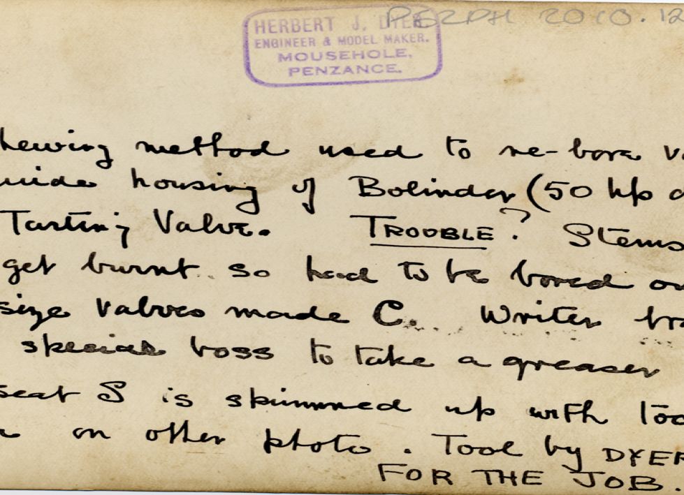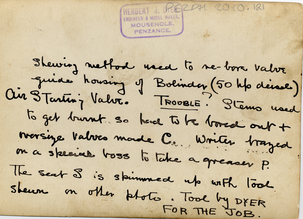 Description: Parts of a Bolinder Air Starting Valve rebored by Dyer