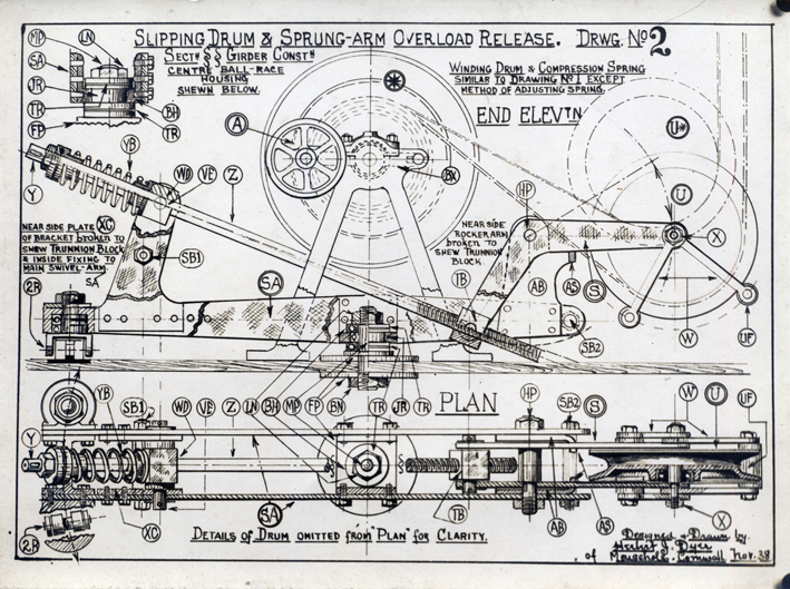 Description: Technical drawing, no. 2, Slipping Drum and Sprung-Arm Overload Release