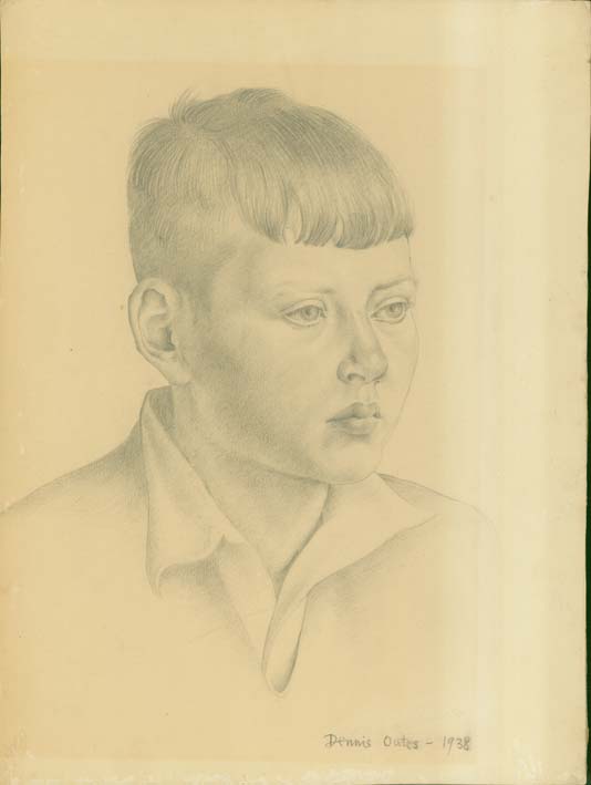 Description: Pencil sketch of Dennis Oates as a young boy. Pat Rowe was a pupil of Stanhope Forbes during the 1930s and this sketch was drawn under his tutorship.