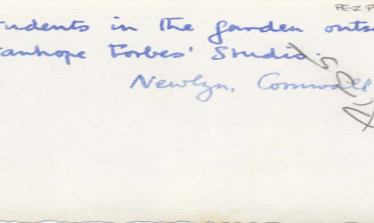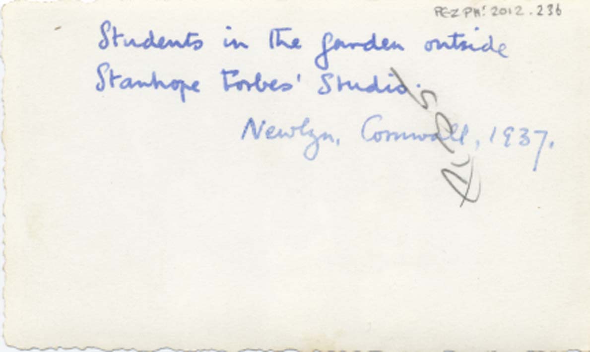 Description: Students in the garden outside Stanhope Forbes' studio, Newlyn, Cornwall, 1937.