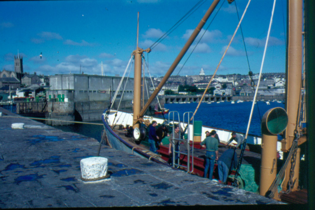 Item: The crew of the Scillonian closing her hatches on leaving Penzance Harbour