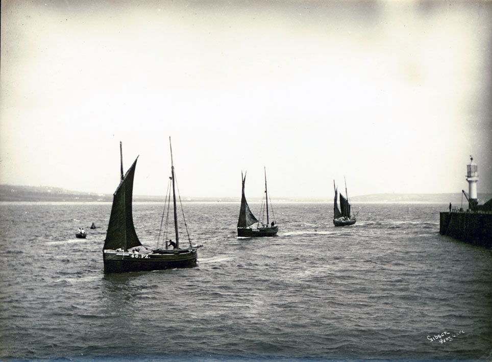 Item: Mackerel boats sailing into Penzance Harbour April/May 1885.