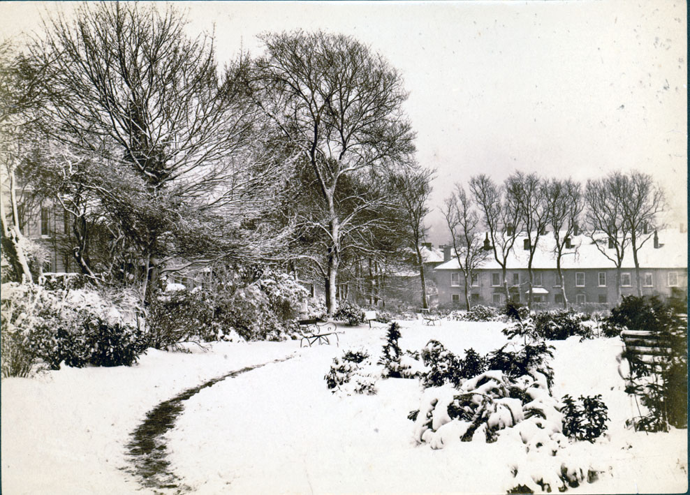 Description: A photograph of Morrab Gardens, Penzance, after the snow blizzard of March 9 1891.
