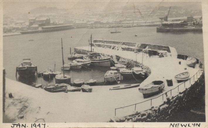 Description: View of the Old Harbour with lots of little boats, January 1947.
