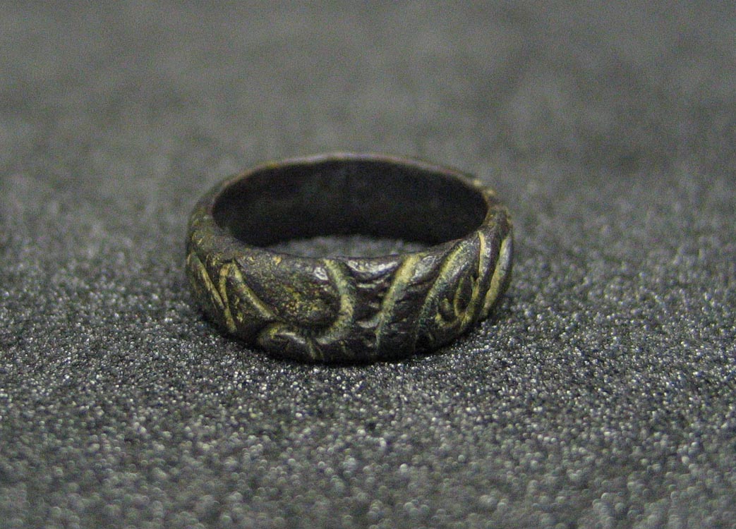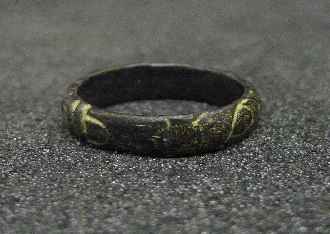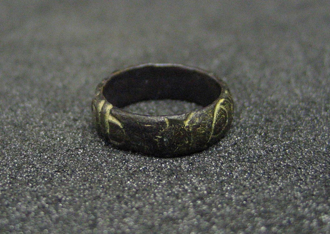 Description: Bronze peasant's ring with incised decoration. Was found in a field in Heamoor and has been identified by the British Museum.