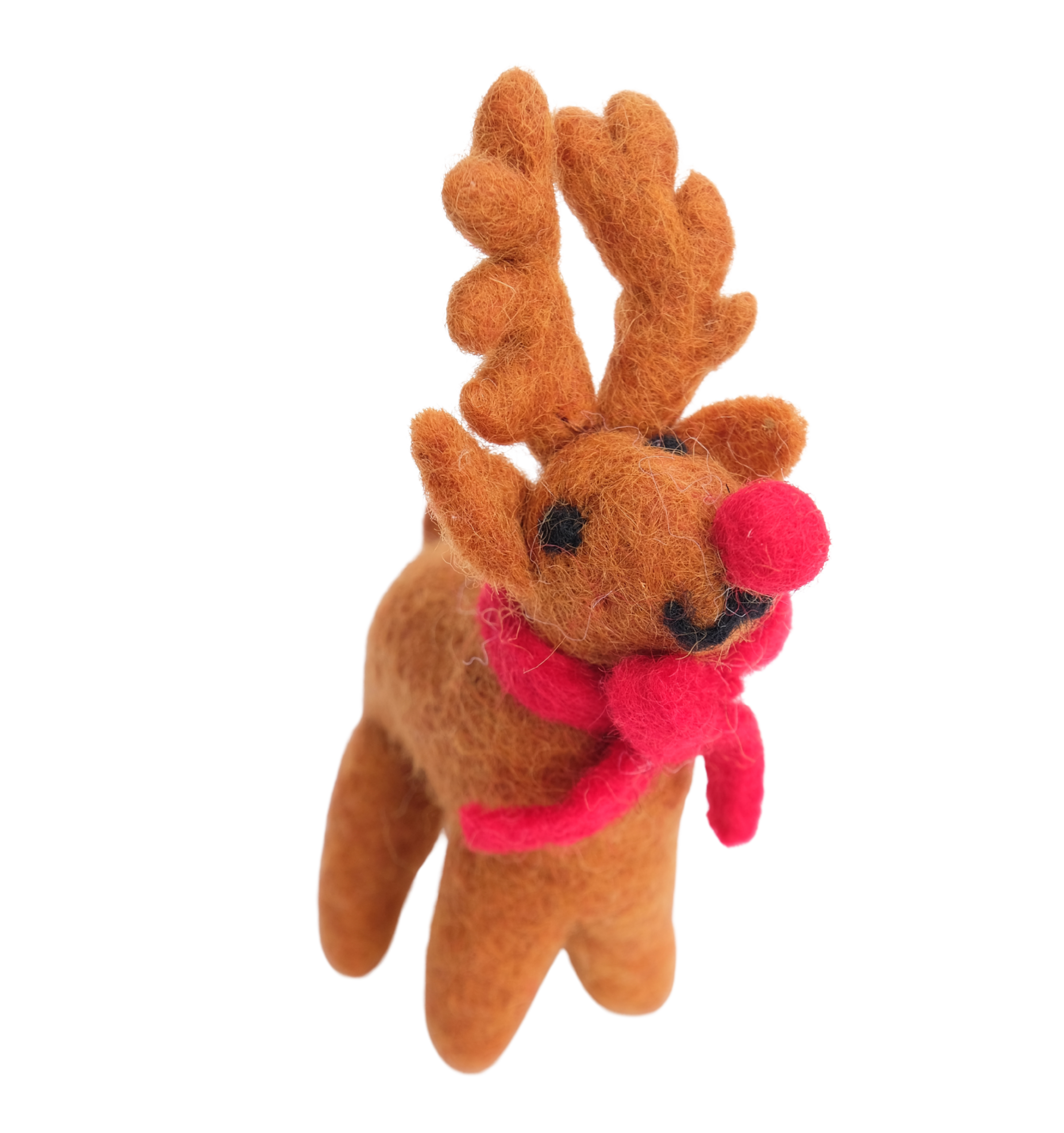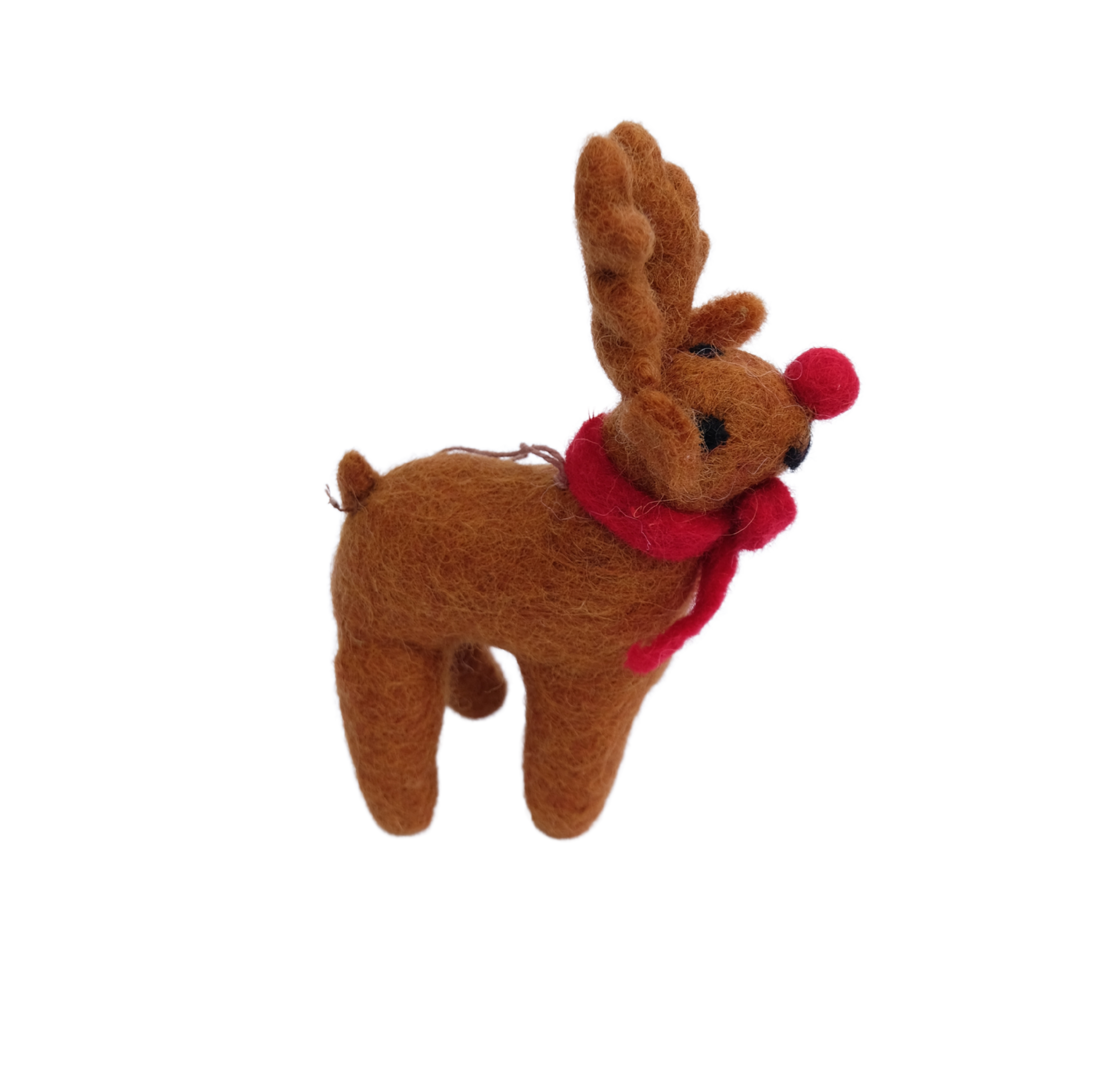 A classic red-nosed Rudolph in brown, made using traditional needle felting techniques from entirely biodegradable and sustainable materials.